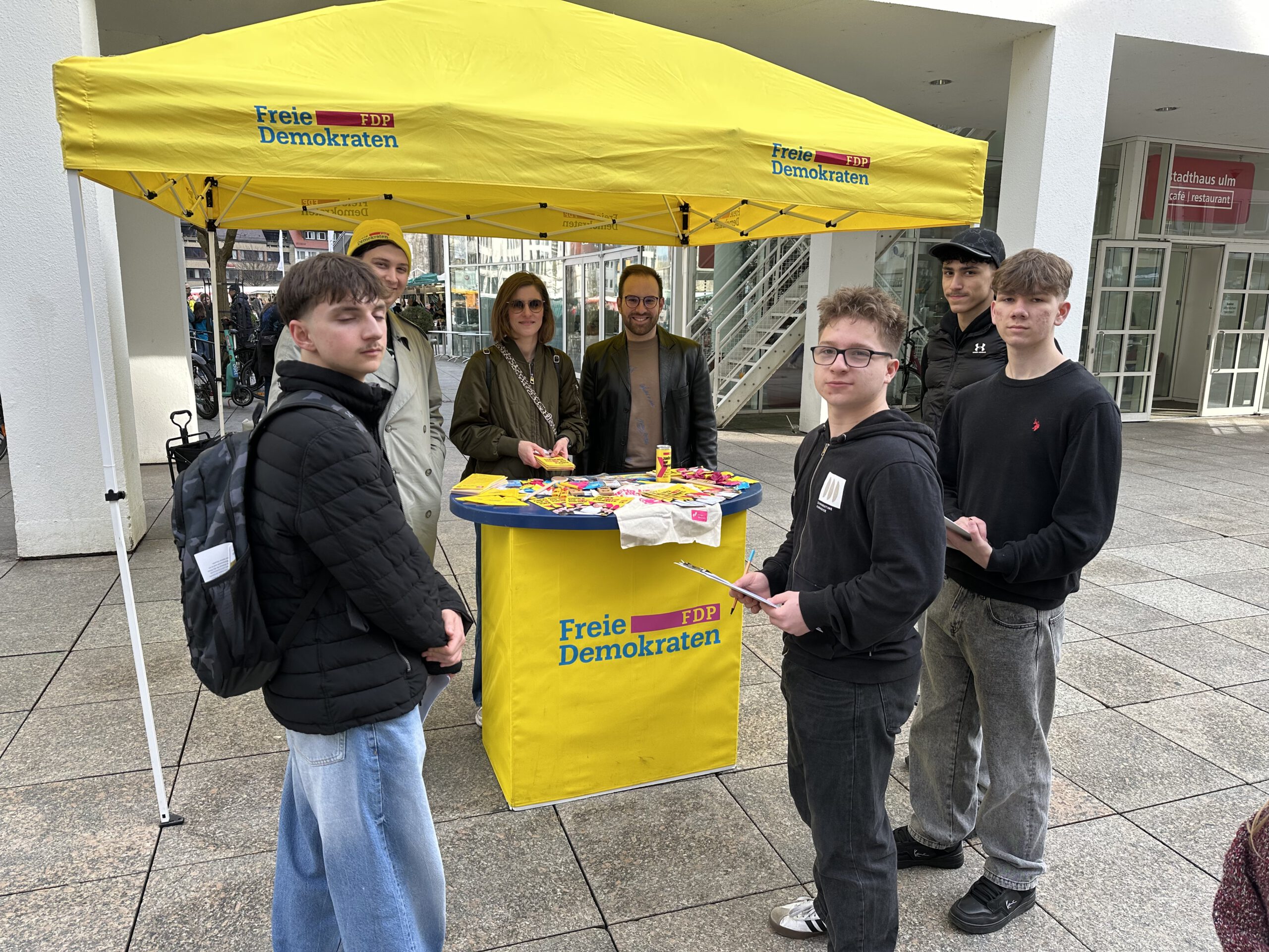 Eine Woche vor der Landtagswahl in Baden-Württemberg wurde es für 25 Schülerinnen und Schüler der 10. Klassen der Realschule Vöhringen ernst. Im Rahmen des Politik- und Gesellschaftsunterrichts (PuG) tauschten sie das Klassenzimmer gegen das Pflaster der Ulmer Innenstadt. Das Ziel: Die Wahlkampfstände der Parteien – und das aus gutem Grund. Da bei dieser Wahl erstmals auch Jugendliche ab 16 Jahren ihre Stimme abgeben durften und einige unserer Schüler in Baden-Württemberg wohnen, war das Interesse an den Positionen der Politiker groß.